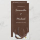 Un programme de mariage sur le thème de la campagne avec une paire de fer à cheval rustiques et des marguerites Gerbera blanches.
