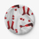 rote Stiefel, Sporen und Herz auf dem Satin-Design