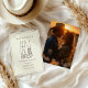 Western Rustic Modern Foto Save the Date - Eine einzigartige, western-inspirierte Save-the-Date-Karte mit einer handgezeichneten Illustration eines Cowboys und einer Cowgirl-Dame, auf deren Rückseite Ihr Lieblingsfoto im Vollformat zu sehen ist. Wird in der Kollektion in verschiedenen westlichen Farben erhältlich sein. Gezeigt in Espresso-Braun.