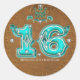 Western Rustikal-braune Imitate Leder Nummer 16 Runder Aufkleber