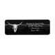 Rustikales Western Land Vintag antike Schwarz-Weiß Cowboy-Stil. Spaß Hochzeit speichern Sie das Datum Rücksendeadresse Etikett. Einladungen für den Schädel der Bullen. Benutzen Sie einen kleinen Spaß mit diesem niedlichen, lustigen Bauerndesign. Typografie kann personalisiert sein. Alter wilder Westen, einzigartig. Cooles, trendiges Bauerntier. Bildrecht Marg Seregelyi Fotografie.