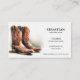 Cartes de visite avec un design moderne et artistique de bottes de cowboy. Idéal pour les boutiques d'usure occidentales et autres entreprises. Utilisez le code QR pour votre boutique en ligne ou votre site Web. Customisez le texte à l'avant et à l'arrière de la carte. Couleurs Brown et noires. Utilisez le modèle pour créer vos propres cartes de visite.