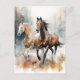 Western Wildpferd Postkarte. Schöne Aquarellpferde und braune Wildpferde, die in der Wildnis laufen.