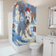Westie läuft im Schnee mit Weihnachtshut Duschvorhang