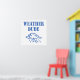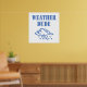 Wetter-Typ - weißes Poster mit blauer Schablonenschrift und Sturmwolke-Grafik.