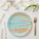 Ein schönes Digitalmuster in Blues, Weiß, Tans und Orange, entstanden aus einem nah-up-Foto eines verwitterten Brettes auf der Seite eines alten Othouse. Farben wurden digital mit Software verbessert. Schönes Holzkorn mit etwas dunkleren Bereichen aus Verschleiß.