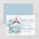 Personalisierte Wal-Babydusche danke Karten. Niedliches Design in Blau und Weiß, vollständig editierbar mit dem Mama-to-be-Name und Party-Datum.