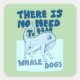 A funny illustration of a creature which is half dog and half whale. The text reads there is no need to fear the whale dog. A humorous illustration for children or anyone who loves both dogs and whales.