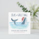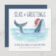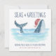 Die Weihnachtskarte des Nautical Spaß ist mit einem Aquarellwal ausgestattet, der eine Weihnachtsmannmütze trägt, die im Meer schwimmt und dessen Schwanz mit Streichlichtern geschmückt ist. Die Grüße "Seas & Greetings" und "Einen Wal von einem guten Weihnachtsfest wünschen", zusammen mit dem Namen können personalisiert sein. Kunst von KL Stock