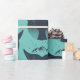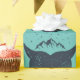 Geschenkpackung mit einem Abzeichen-Stil grafische Muster Features Wale Schwanz Silhouette mit Berg Kontur auf leichtem aqua Hintergrund