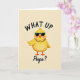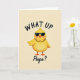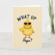 This design shows a chubby, human-like chick standing front and center on a warm, light beige background, giving off an easygoing, friendly confidence. Its sunny yellow body is softly shaded to look smooth and cuddly, with a slight head tilt that feels like it’s greeting someone it likes. Dark sunglasses sit across its face, and a gold-toned chain rests at its neck, while rosy cheeks add a sweet, affectionate touch like it’s sharing an inside joke with a close friend 🌷. A small orange beak and tiny orange feet keep the look simple and cute, like a quick wave in cartoon form. Near the top, the text “WHAT UP” appears in thick black letters, slightly arched over the character. Near the bottom, “Peeps?” is written in flowing black lettering that leans a bit to the side, leaving open space around the chick 🐰. The sunglasses are a deep black with a subtle shine, and the yellow shading transitions gently from brighter highlights to softer midtones.
