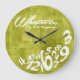 Textured Lime Green Background und White, was auch immer, ich bin zu spät jedenfalls Wand Uhr. Was für eine Uhr.