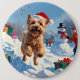 Wheaten Terrier läuft im Schnee mit Weihnachtshut Button