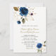 Whimsical Blue Gold Blume Monogram Wedding Einladung