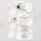Whimsical Blue Gold Blume Monogram Wedding Menükarte