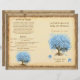 Lichtpulli Blauer Herzleaf Tree Whimsical Magical Tree of Liebe Royal Blue Heart Leaf Tree on Tea Gestaltetes cooles silberfarbenes Metallic Papier und einige niedliche kleine Wirble Designs, um die Wurzeln der Liebe auf dieser einzigartigen Waldlandhochzeit Einladung zu erhöhen..