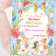 Ajoutez une goutte de poussière de fée à votre grand jour avec cette Invitation d’anniversaire Whimsical Blue and Pink Fairy! Décoré de fleurs d'aquarelle douce, de fées flottantes et d'ailes pastel, ce design sucré capte la magie d'une fête de jardin féerique rêveuse. Parfait pour l'anniversaire de votre petite fille, cette invitation personnalisable donne le ton d'une fête légère et joyeuse remplie d'émerveillement et de charme. C'est une façon magique et délicieuse pour les amis et la famille invitations d'un événement magique d'anniversaire!