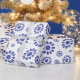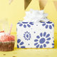 Hübsche blaue und weiße blumengeschmückte gemusterte Geschenkpackung. Abstrakte blaue Gänse auf Weiß.