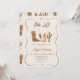Whimsical Boots Champagne Hallo 40 Geburtstag Einladung Whimsical Frauen zum Geburtstag Einladung mit einem Cowgirl Stiefel, Flasche, Glas und Kaktus in braun und orange. Die Einladung zum Geburtstag enthält auch einen sonderbaren Rahmen mit Herzen und Retrostars.