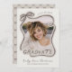 Celebrate the Class of 2026 with this playful graduation announcement featuring a hand-drawn doodle frame. The sketch-style border loops into a charming coquette bow at the top and seamlessly flows into the word "Graduate" at the bottom, creating a casual and artistic frame for your favorite senior photo. Set against an organic cream and beige palette that is soft and neutral, the design feels whimsical yet sophisticated. This template is built for complete flexibility; all colors are fully editable, allowing you to change the color of the doodle frame, the background, and the personalized text to perfectly match your school colors or personal style. On the back, there is a matching seamless bow pattern and a full-length photo. © Kimbellished, LLC