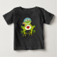 Dieser Säugling T - Shirt ist sicher ein Hit mit Baby! Es zeigt unseren niedlichen grünen Frosch mit großen Augen, die eine blaue Baseballkappe tragen - rückwärts. Er hat auch ein riesiges rotes Herz auf seinem Bauch. Der Druck ist nur auf der Vorderseite.