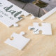 Whimsical sage green "save the date" brush script and one foto wedding save the announcement puzzle.