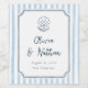 Whimsical Calligraphy Retro Blue Stripes Wedding Weinetikett