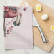 A kitchen towel with a cute retro style carousel horse. Drawn in Pretty pink colors with fancy flowers.