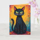 Diese bezaubernde Karte zeichnet sich durch eine hübsche schwarze Katze aus, die mit faszinierenden grünen Augen strahlt und mit Neugier und Verspieltheit zu strahlen scheint. Die rosa Nase und die zarten Whiskers sorgen für eine reizvolle Touch, während die aufwändigen Fellmuster einen strukturierten und künstlerischen Reiz erzeugen. Die Kulisse strotzt vor Energie und Dynamik und präsentiert eine bezaubernde Mischung aus warmen Gelbtönen und Orangen sowie beruhigender Blues, geschmückt mit skurrilen Blume und Sternen, die das Design mit magischer, traumhafter Qualität verbinden. Diese Karte ist perfekt für Katzenliebhaber und Kunstliebhaber, sie ist innen leer und ideal für persönliche Noten. Alternativ klicken Sie auf "Diese Vorlage personalisieren", um ganz einfach Ihren eigenen Gruß hinzuzufügen.