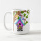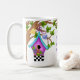 Beginnen Sie Ihren Morgen mit einer positiven Erinnerung, wenn Sie diese wunderschöne Whimsical Checkerboard Birdhouse Tasse benutzen. Whimsical Checkerboard Birdhouse ist eine bezaubernde und farbenfrohe Illustration von Debi Payne Designs. Diese Abbildung zeigt ein skurriles Vogelhaus mit lila und aquamarinem Akzent, in dem mehrere doodle Blume über einer schwarz-weißen Schachbrettlinie sitzen. Das Vogelhaus hängt in einem Baum mit mehreren grünen Blätter durch eine delikate Bug Krawatte lila Band. Auf einem Baum stehen zwei kleine Tweedie-Vögel, die in der Luft fliegen. Die Abbildung zu inszenieren ist das handgeschriebene positive Sprichwort, das lautet: "Freunde sind das Sonnenlicht des Lebens."