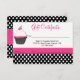 Geschenkgutschein für hübsche Bäckereien in Weiß und Rosa mit schwarz-weißem Polka-Dot-Akzent. Weiße, rosa, weiße und schwarze Kuchen schmücken die links Vorder- und Rückseite der Karte. Text ist bereit, um Ihre Bedürfnisse zu personalisieren, um Ihren Anzug zu erfüllen. Es stehen passende Visitenkarten zur Verfügung.