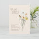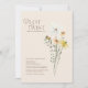 Whimsical Daisy Plot Drehung Wedding Save the Date Card - Bringen Sie Ihre Hochzeitsvision mit diesem minimalistisch blumigen Set zum Leben. Mit Akzenten der Wildblume, zarten Blume, gelben Blumen und sanften Grünpflanzen ist dieses skurrile, botanische Design mit flatternden Schmetterlingen für ein ätherisches Ambiente unterstrichen.