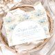 Welcome a little one with this charming storybook-inspired dinosaur design, featuring soft blue illustrations and a delicate vintage nursery feel. The playful dinosaur pattern paired with a clean arched layout creates a gentle and timeless look, perfect for a cozy and joyful baby shower. With its soft color palette and classic storybook aesthetic, this design feels warm, inviting, and effortlessly adorable—ideal for celebrating a baby boy or a whimsical dino-themed event.