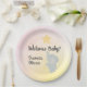 Whimsical neue Baby / Baby Dusche Papier Party Teller mit Babyelefant mit Stern und vollständig anpassbaren Text auf Pastellfarben Hintergrund.