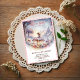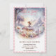 • A magical watercolor invitation featuring a fairy sitting on a mushroom surrounded by twinkling stars, enchanted flowers, and a faraway castle. This whimsical design is framed by a sweet pink gingham border, perfect for a fairy garden or fantasy-themed baby girl shower.