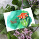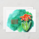 Whimsical Floral Hello Green Watercolor Postkarte