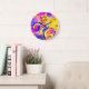 WHIMSICAL FLOWERS pink yellow blue Große Wanduhr