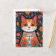 Whimsical Folk Art Cat und Blume Postkarte
