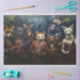 eine Gruppe von anthropomorphen Füchsen, die jeweils in einzigartiger Kleidung gekleidet sind und unterschiedliche Persönlichkeiten ausstrahlen. Hier ist ein kreativer Name und eine Beschreibung für dieses Ensemble: Der Foxtrot-Troupe Auf dem links, ein Fuchs in einer blauen Jacke schmiegt eine E-Gitarre und setzt den Rhythmus für die Aufführung der Truppe. Als Nächstes trinkt ein Fuchs in einem roten Anzug den Kaffee, der sich vielleicht über die Tagesliste Gedanken macht oder einfach nur eine Morgenbraue genießt. Teilweise versteckt in der Mitte ist ein Charakter mit einer gefederten Kopfzeile, die auf Geschichten von Folklore und Weisheit hinweist. Rechts kanalisiert ein Fuchs mit Augenpflaster und Bandana den abenteuerlichen Geist eines Piraten aus Geschichten aus der Vergangenheit. Schließlich spielt ein Fuchs in Weiß, mit Blume geschmückt, Geige und fügt der eklektischen Melodie der Truppe eine Touch von Eleganz und Gnade hinzu. Dieses Bild, mit seiner Mischung aus Musik, Mode und Geschichtenerzählen, erfasst das Wesen einer Gruppe von Charaktere, die bereit sind zu verzaubern und unterhalten.
