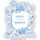 Whimsical French Blue Botanical Crest Wedding Aufkleber