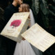 Whimsical Fuchsia Heart Leaf Tree Wedding Programm