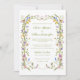 Die Vintag inspirierte Blumenstruktur mit bunten Frühlingsblumen wie Krokus, Narzissen, Iris, Schmetterlinge, Bienen und handgeschriebenem Schriftart lädt zum Hochzeitsfeiern ein. Diese Einladung eignet sich ideal für Paare, die eine Touch von Charme und Eleganz in ihren besonderen Tag einführen möchten. Der aufwändige Blumenrahmen fügt eine Touch von Launen hinzu und hebt die Freude an blühender Liebe hervor. Die farbenfrohen Wildblumen sorgen für einen schönen Pop und fügen dem Design ein spielerisches Element hinzu. Der handgeschriebene Script-Schriftart fügt der Einladung eine persönliche Touch hinzu, sodass er sich gemütlich und intim fühlt. Diese Einladung eignet sich perfekt für eine Gartenhochzeit, eine Hochzeit im Freien oder ein Paar, das ein einzigartiges und charmantes Einladungs-Design sucht.