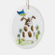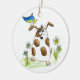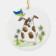 Whimsical Gepunktet Dog with Bird Keramik Ornament