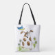 Das ist ein originelles Mischmediengemälde eines skurrilen gepunkteten Hundes und eines Bluebird mit Knochen.