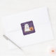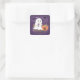 Whimsikale lila Halloween-Aufkleber mit einem bezaubernden kleinen Geist beim Schlumpfen eines kalten Drinks . Personalisieren Sie sie mit Ihrem eigenen Text und Familiennamen . © ArianeC Illustrations-Alle Rechte vorbehalten