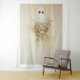 Das Bild zeigt ein minimalistisches Bild einer geistreichen Figur, die in einem weißen Blatt mit zwei dunklen, hohlen Augen drapiert ist. Der Geist verfügt über einen großen, üppigen Strauß an Wildblumen, der der Einfachheit des Erscheinungsbildes des Geistes widerspricht. Der Hintergrund ist weich, cremig, beige und unterstreicht die zarte und surreale Natur der Szene. Das Kunstwerk verbindet das Unheimliche mit dem Knebel und schafft eine faszinierende und ruhige Atmosphäre.