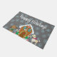 Spaß und Weihnachtsmaske mit einer hundegroßen Hütte, zwei Hunden und hellblauen Schneeflocken auf dunkelgrauem Hintergrund. Anpassbare Happy Holidays Gruß in weißem, modernem Skript.
