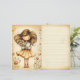 A soft, storybook-inspired junk journal page featuring a whimsical girl with flowing hair, gently holding her book and a bouquet of delicate florals. Warm vintage parchment tones and subtle botanical details create a peaceful, nostalgic atmosphere that feels both cozy and timeless.
