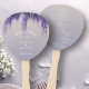 Whimsical Gradient Lila Floral Wedding Program Hand Fan Behielt Ihre Gäste cool und informiert mit diesem eleganten und funktionalen Hochzeitsprogramm Hand Fan. Das skurrile lila Blumendesign auf sanften lila Gradientenhintergrund schafft ein romantisches und traumhaftes Aussehen. An der Vorderseite des Ventilators befinden sich eine einladende Nachricht, die Namen der Paare, das Hochzeitstag und der Veranstaltungsort. Auf der Rückseite des Fans finden Sie eine detaillierte Zeremonie, alle Details über die Hochzeitsfeier und ein herzliches Dankeschön an Sie können auch hinzugefügt werden. Dieser stilvolle und praktische Handventilator ist der perfekte Weg, um Ihre Gäste während Ihrer Hochzeitsfeier komfortabel und informiert behalten. Dieses wunderschöne Design ist Teil unserer Lila Blumensammlung, die Ihre Hochzeit unvergesslich und schön macht.