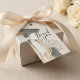 Express your gratitude with a touch of whimsical elegance. This thank you gift tag features a beautiful, hand-painted watercolor sketch of a graduate from a back-view perspective. The design highlights a stylish black mortarboard adorned with a delicate border of white pearls and a stunning, oversized fabric bow with long, flowing tails. To complete the look, the graduate holds a lush bouquet of creamy white roses.